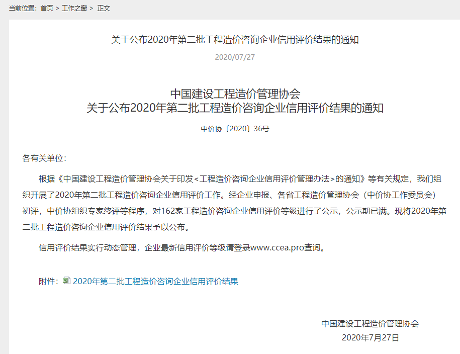 近日,根據(jù)《中國(guó)建設(shè)工程造價(jià)管理協(xié)會(huì)關(guān)于印發(fā)<工程造價(jià)咨詢企業(yè)信用評(píng)價(jià)管理辦法>的通知》等有關(guān)規(guī)定,中國(guó)建設(shè)工程造價(jià)管理協(xié)會(huì)組織開展了2020年第二批工程造價(jià)咨詢企業(yè)信用評(píng)價(jià)工作,經(jīng)企業(yè)申報(bào)、各省級(jí)工程造價(jià)協(xié)會(huì)初評(píng)(中價(jià)協(xié)工作委員會(huì)),中價(jià)協(xié)組織專家終評(píng)等程序后公布了2020年第二批工程造價(jià)咨詢企業(yè)信用評(píng)價(jià)的結(jié)果。