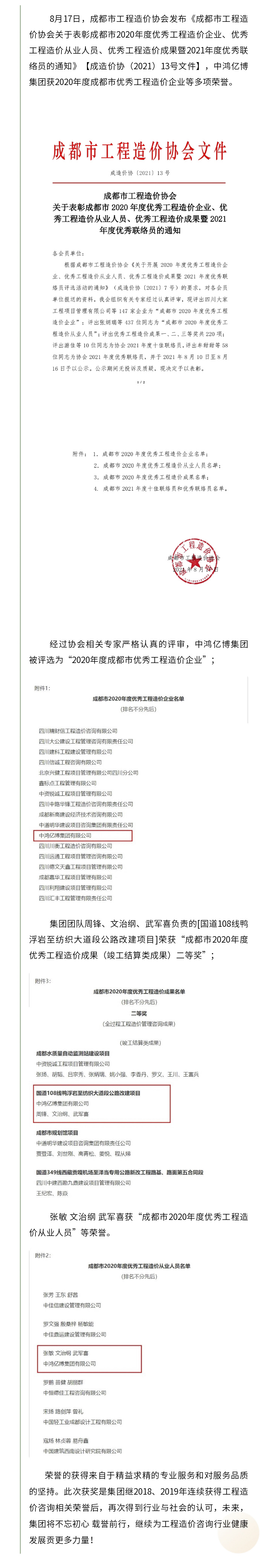 中鴻億博集團(tuán)獲工程造價(jià)咨詢領(lǐng)域多項(xiàng)榮譽(yù)