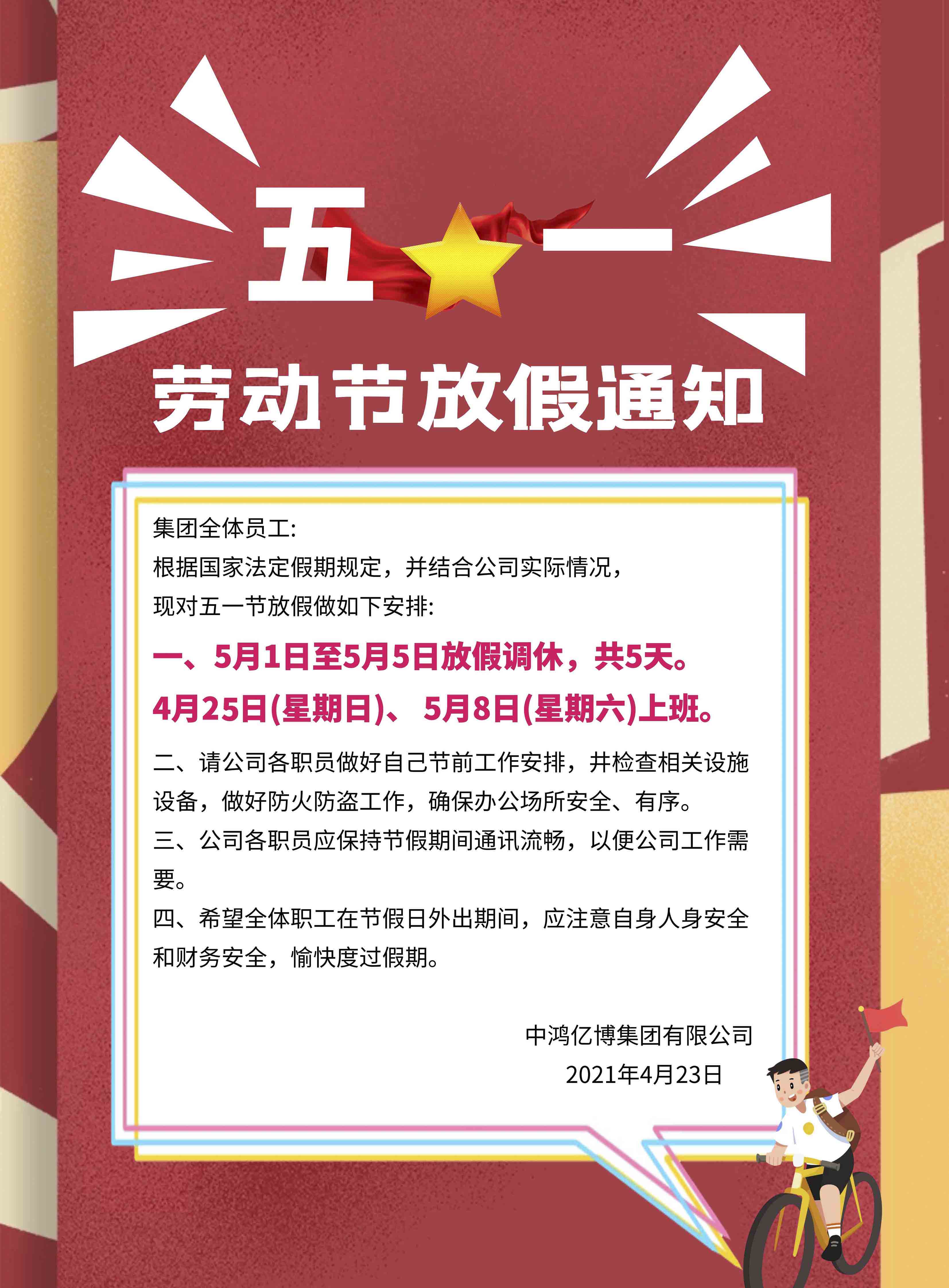 關于五一勞動節(jié)放假安排的通知