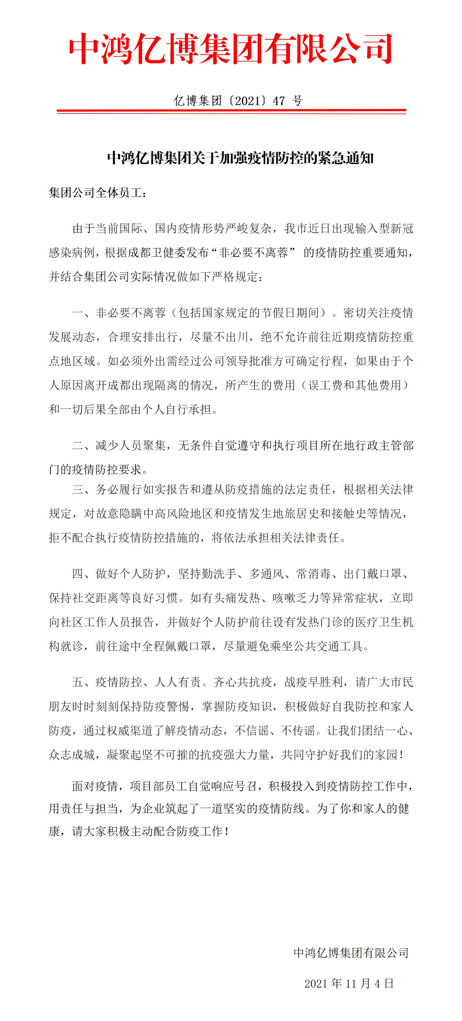 中鴻億博集團(tuán)關(guān)于加強(qiáng)疫情防控的緊急通知!