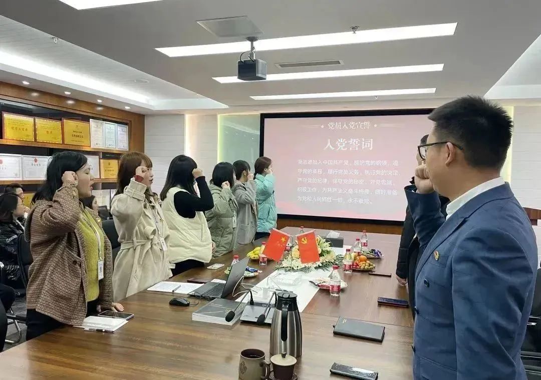 全體黨員在支部書記的帶領(lǐng)下,佩戴徽章,莊嚴(yán)地舉起緊握的右手,重溫誓詞,再次進(jìn)行了黨性的洗禮。“我志愿加入中國共產(chǎn)黨,擁護(hù)黨的綱領(lǐng),遵守黨的章程,履行黨員義務(wù),執(zhí)行黨的決定……”通過重溫入黨誓詞,讓全體黨員時(shí)刻牢記對黨的莊嚴(yán)承諾,更加堅(jiān)定理想信念,堅(jiān)守行為準(zhǔn)則,時(shí)刻保持黨的優(yōu)秀傳統(tǒng)和作風(fēng),在工作崗位上奮力拼搏,爭先創(chuàng)優(yōu)。