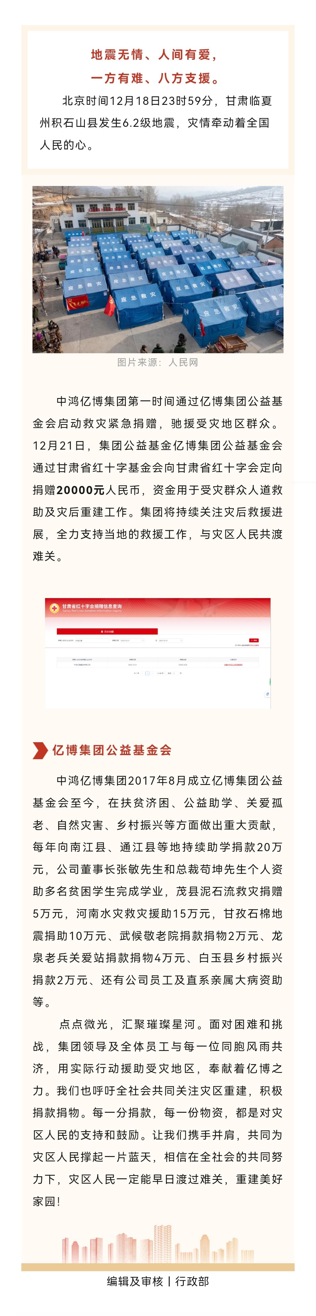 億博公益丨中鴻億博集團(tuán)向甘肅積石山縣6.2級地震災(zāi)區(qū)捐款
